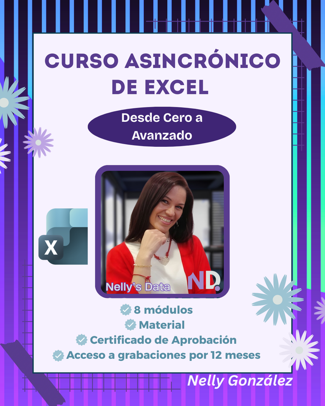 El curso es dictado por la Lic. Nelly González, Contadora Pública con Esp. en Tributos Nacionales. certificada MOS-211 Excel Expert, quie comparte conocimiento gratuito en diversos eventos nacionales e internacionales y portodas sus redes sociales bajo la firma Nelly´s Data.